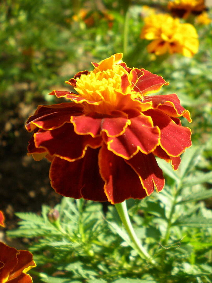 Бархатцы хохлома красные - это удивительное растение с красивыми красными цветками, которые радуют глаз в течение нескольких месяцев в году. Сорт krasnye поражает своей изящностью и неповторимым шармом. Высота растения может достигать до 40 см, а диаметр цветка - 4-5 см. Листья бархатцев хохлома красных имеют интересную форму и насыщенный зеленый цвет, что делает растение еще более привлекательным.