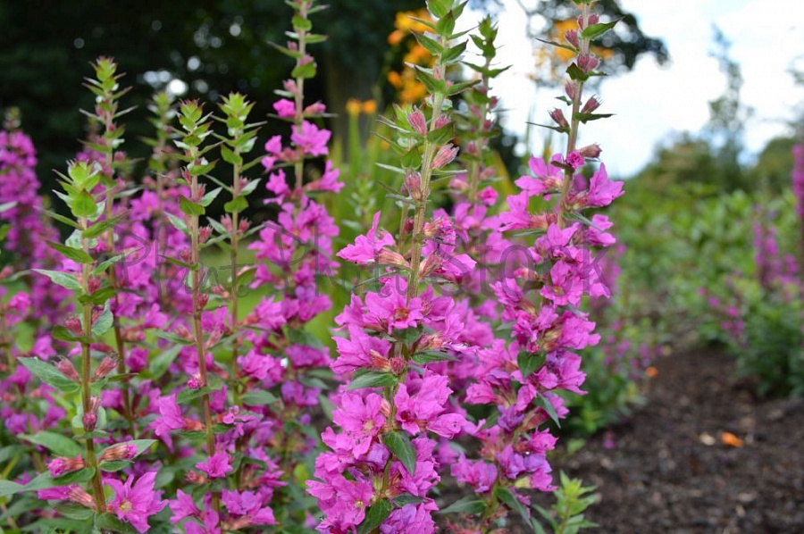 Саженцы Дербенника иволистного Робин (Robin Lythrum salicaria) и на солнечных участках, и при легком затенении обеспечат буйное цветение оригинальных ярко-малиновых соцветий с июня до конца лета. Кусты плотные, мощные, с многочисленными побегами, хорошо облиственные. Разрастаются очень быстро, всего за сезон из небольших саженцев формируется объемный куст, диаметр которого достигает 60-70 сантиметров. Lythrum salicaria плохо переносит засуху и великолепно себя чувствует во влажной почве, может расти у водоемов и даже на мелководье.
