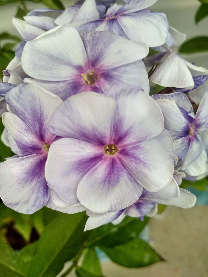 Окраска цветка : белая с фиолетовыми оттенками и пурпурной звёздочкой