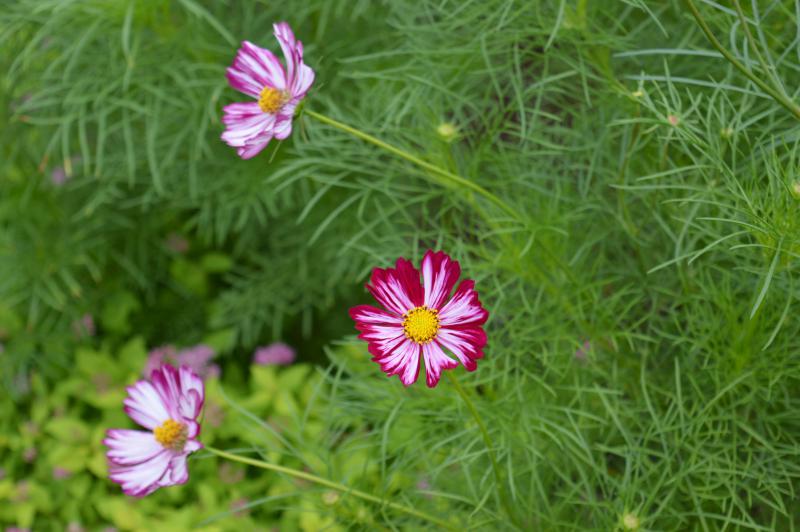 Космея карусель - это удивительное растение с бело-розовыми цветками, которое поражает своей изящностью и нежностью. Ее стебли прочные и прямые, достигают высоты до 100 см, что делает ее идеальным выбором для групповых посадок в солнечных местах. Листья космеи карусель имеют интересную форму и придают растению особый шарм.