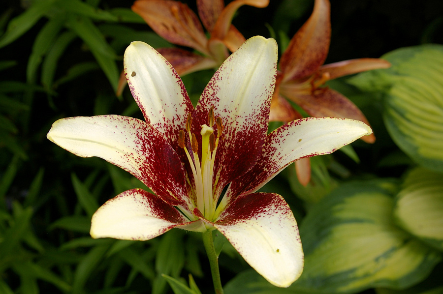 Окраска цветка : кремовый с темно-бордовым крапом
