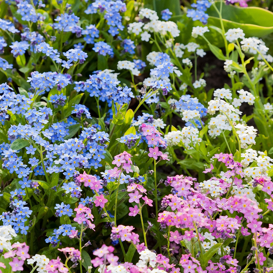 Семена незабудки (смесь) станут достойным вариантом для наполнения цветников, балконных ящиков и подвесных горшков. Посадите смесь и выращивайте нежные цветочки белого, розового и голубого оттенков. Высота взрослых кустов не превышает 30 см. При плотной посадке растения образуют плотный ковер, закрывающий землю. Семена незабудки высевают в начале лета, а цветение наступает весной следующего года. Растение неприхотливо и стойко переносит зимнее похолодание. Чтобы кусты были максимально красивыми, обеспечьте им регулярный обильный полив и хорошее освещение.