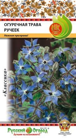 Семена огуречной травы "Ручеек" достаточно быстро прорастают и дают хороший урожай свежей зелени спустя 40-50 дней после появления всходов. В выращивании культура неприхотлива. Но лучше всего высевают семена огуречной травы "Ручеек" на рыхлых, в меру удобренных почвах. В пищу рекомендуется использовать в свежем сушеном виде листья, побеги и синие цветочки. Применяется в виде приправы к овощам, в консервации и засолке. В зеленой массе содержится большое количество полезных веществ. Само растение получается раскидистое, в высоту достигают до 40 см.