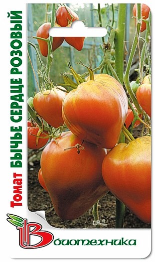 Семена томата "Бычье сердце Розовый" (Byche serdtce Rozovyj) неприхотливы в выращивании и обладают массой других достоинств. Сорт подходит для выращивания в условиях открытого грунта и пленочных теплиц. Растение детерминантные, сильнорослое. Высота главного стебля может достигать 160-200 см. Плоды получаются крупные, сердцевидной формы. При первом сборе масса помидора доходит до 400 грамм, а при следующих – до 100 грамм. Плоды мясистые, мало семян, удлиненно-овальной формы, сдавлены с боков, розового цвета. На вкус помидоры сладкие с пикантной кислинкой. Зрелые плоды могут лежать не больше 10–16 суток.