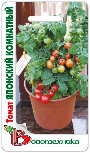 Семена томата "Японский комнатный" (Japonskij komnatnyj) – один из редких сортов. Растение миниатюрное, обладает высокими декоративными качествами, не требует формирования. Выращивать можно в условиях открытого и защищенного грунта, в также в цветочных горшках на балконе и подоконнике. Период от появления первых всходов до начала сбора урожая составляет 110-120 дней. Плоды круглой формы, плотные, средней массой до 50 грамм, в биологической спелости становятся красного цвета. Мякоть сладкая на вкус. На одной кисти созревает до 8 помидорок. Используют урожай в свежем виде или для цельноплодного консервирования.