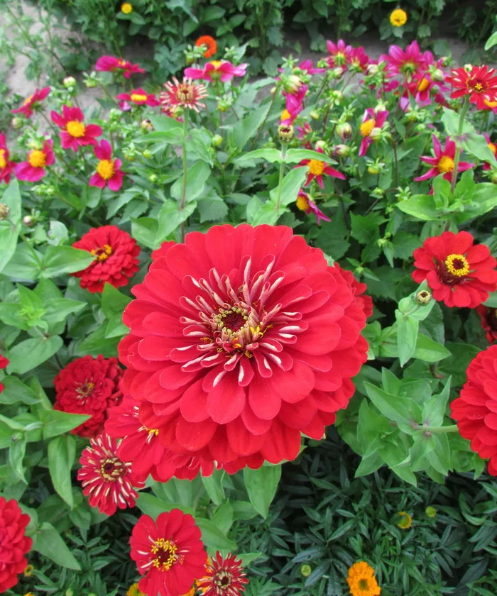 Цинния изящная чери квин - это настоящая королева среди садовых растений! Ее стебель прочный и изящный, достигает высоты до 90 см, а цветки красной окраски привлекают внимание своей красотой. Листья имеют интересную форму и яркую зеленую окраску, что делает растение еще более привлекательным.